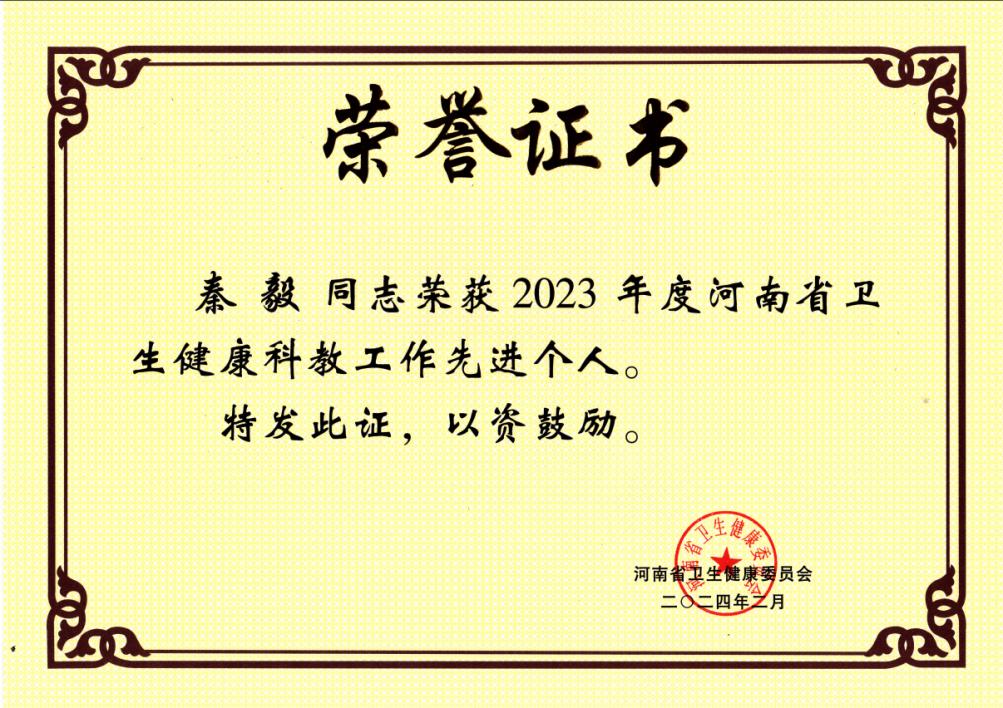 孫威處長宣讀了《關(guān)于公布2023年度全省衛(wèi)生健康科技教育工作先進(jìn)單位和個(gè)人的通知》(豫衛(wèi)科教〔2024〕5號),我院榮獲“河南省衛(wèi)生健康科技教育工作先進(jìn)單位”,教學(xué)管理科副科長秦毅榮獲“河南省衛(wèi)生健康科技教育工作先進(jìn)個(gè)人”。