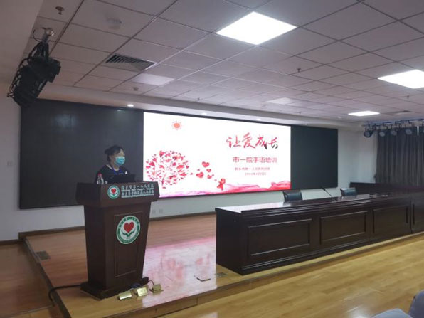 醫(yī)院作為重要的服務(wù)窗口,門診是患者就診的第一站。為提高我院門診志愿者對(duì)聽(tīng)力殘疾患者無(wú)障礙服務(wù)的水平和能力,助力我市全國(guó)文明城市常態(tài)化創(chuàng)建工作的深入開(kāi)展。6月8日下午,在院團(tuán)委書(shū)記宋瑞芳的多方溝通及協(xié)調(diào)下,我院團(tuán)委開(kāi)展了“讓愛(ài)成長(zhǎng),溝通無(wú)限——市一院手語(yǔ)培,助力創(chuàng)文”活動(dòng)。